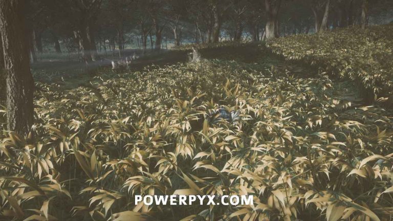 Head down the path between the rock face on the left and the tall grass on the right. Grab any red mushrooms you see along the way.