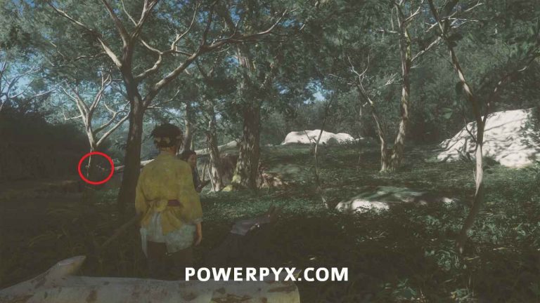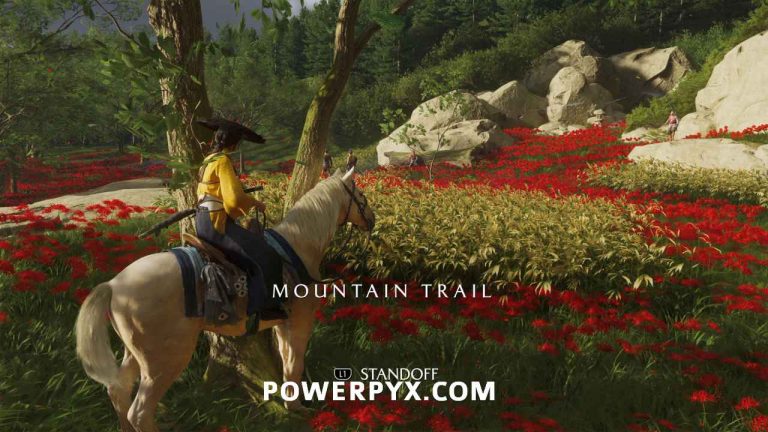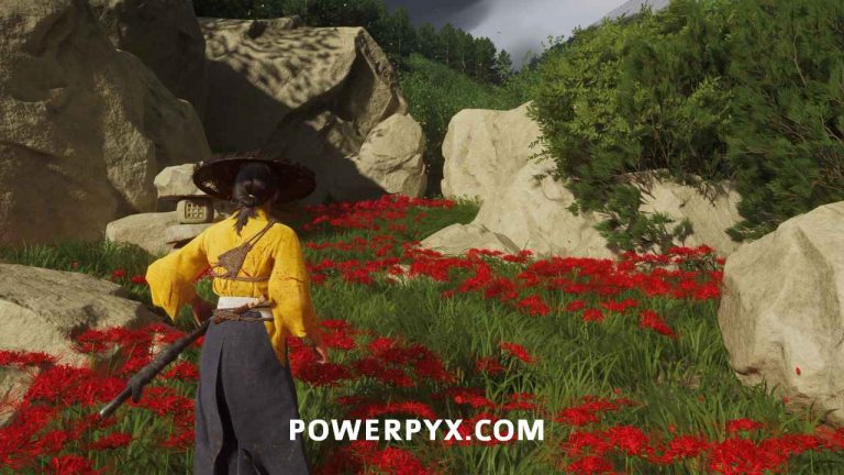 Head west from Yotei’s Shadow Inn to reach the foot of Mount Yotei. Take out the outlaws camped among the red flowers.