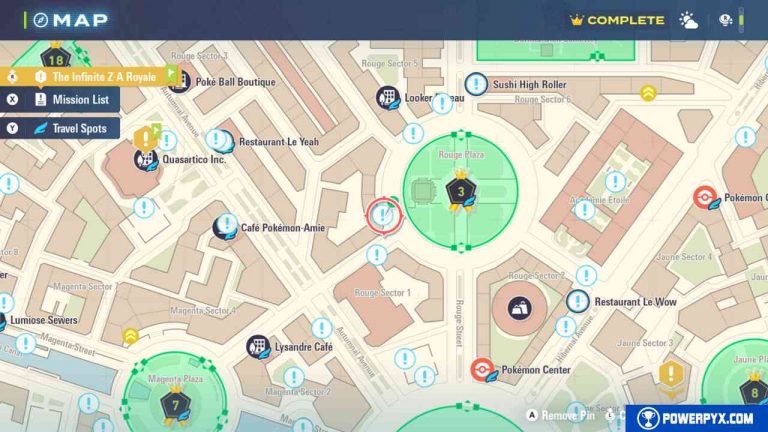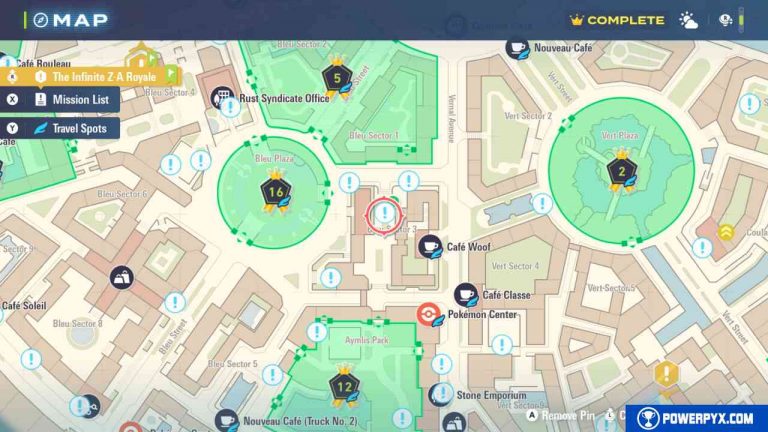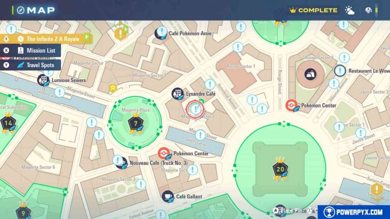 Pokemon Legends Z-A contains 42 Main Missions and 118 Side Missions. This checklist shows all Main Missions and Side Missions with their starting locations and rewards. The Side Missions get marked on the map automatically as you progress through the main story. More of them unlock gradually as you advance the story, they will be marked by blue exclamation points (“!”). The main missions are marked on the map by yellow exclamation points.