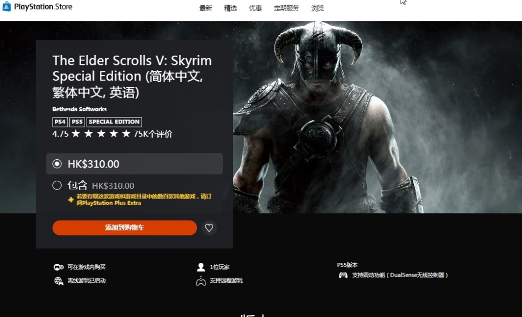 PS商店鏈接:https://store.playstation.com/zh-hans-hk/product/HP1003-PPSA04637_00-TESVSKYRIM000000