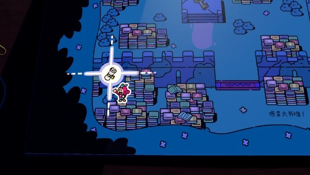 Entre em uma cena cheia de livros, no canto inferior esquerdo do mapa