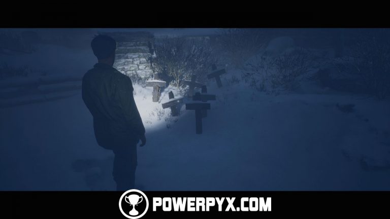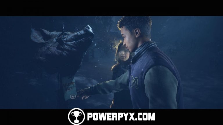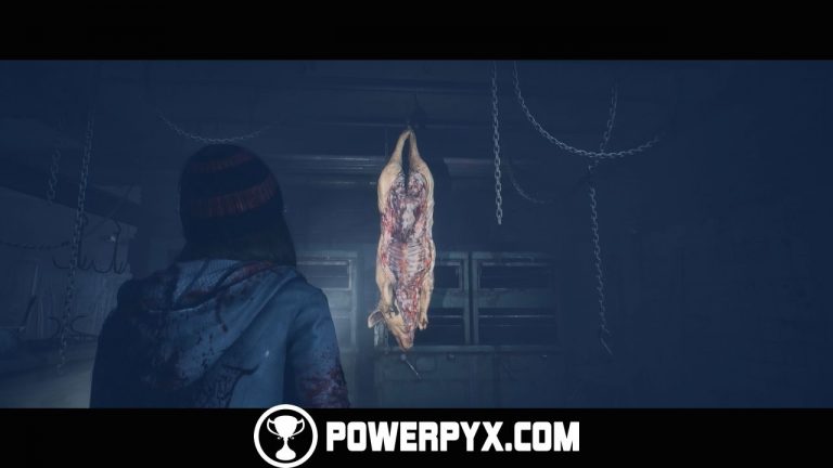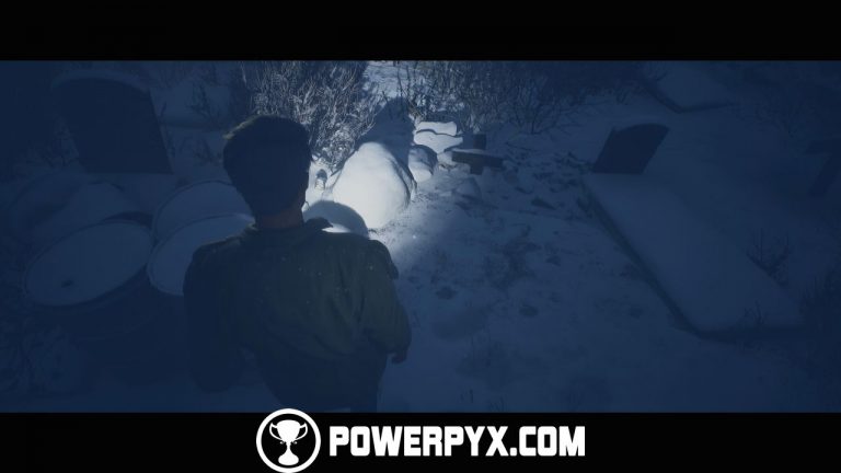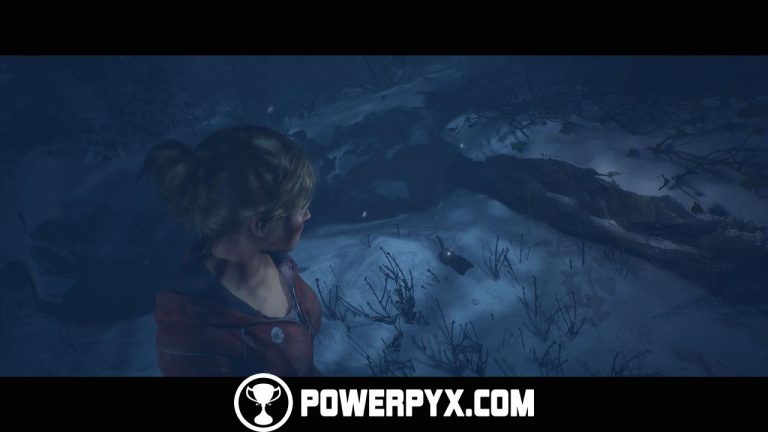 # 43 Mystery Man Clue 15 – Pig’s Head: Depois de jogar como Chris, você terá que sair do alojamento e descer. Siga o longo caminho nevado e fique do lado esquerdo, vire na primeira à esquerda que puder e siga o caminho até o fim. Você receberá um jumpscare e também encontrará a cabeça do porco no chão.