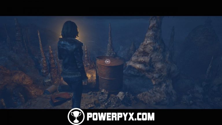 #20 Totem de Perda 2: Pouco depois de encontrar o mapa, você sairá da mina. Depois de uma pequena caminhada, Jéssica olhará por um telescópio e logo em seguida descerá. Depois de um jumpscare, vire-se para encontrar o totem no chão.