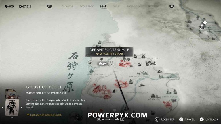 O fantasma de Yotei contém 18 locais de pintura de Sumi. Encontrar as 15 pinturas de Sumi-E do mundo aberto que estão marcadas no mapa destrancam o troféu ocular de um artista. Os 3 missões Related Sumi-E não são necessários para o troféu, apenas as 15 pinturas do mundo aberto contam.