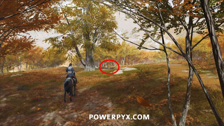 Ainu Item #6 - Em uma área com árvores ao redor, perto do rio. Deve cortar o bambu para entrar na área com as árvores e, em seguida, encontre o item Ainu em um pequeno acampamento.