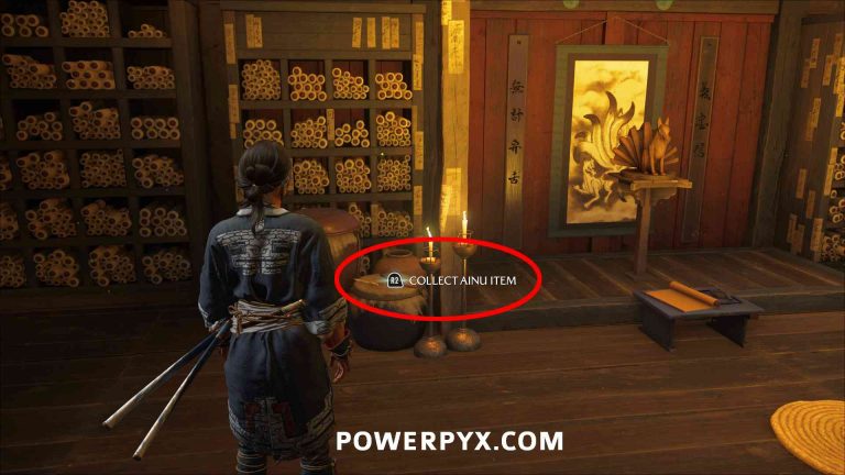 Ainu Item #26 - Inside Cape Inari Hideout, no edifício nas costas. Você entra neste acampamento através do Santuário do Cabo Inari. Deve espremer através de uma lacuna à direita de uma porta trancada para entrar em uma caverna onde você pega uma tocha, depois acenda a lanterna naquela caverna e acenda uma segunda lanterna através de uma lacuna mais à esquerda. Em seguida, continue a acender as lanternas com uma tocha e suba até o acampamento.