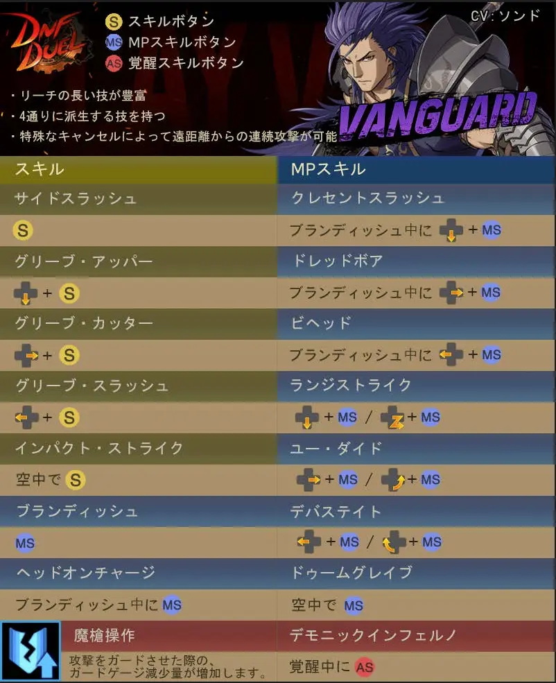 Завоеватель в «DNF Duel» — очень полезная профессия магического стрелка в игре. Имена первого, второго и третьего пробуждений — соответственно Дух Войны и Бессмертный Бог Войны. В Thousand Souls и Conqueror ходы также очень хороши для игры. Список ходов показан ниже. S — кнопка навыка, MS — кнопка навыка MP, AS — кнопка навыка пробуждения.
