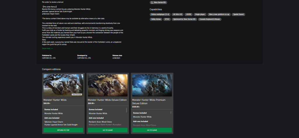 Версия Monster Hunter: Wildlands для XBOX выйдет 28 февраля 2025 года.
