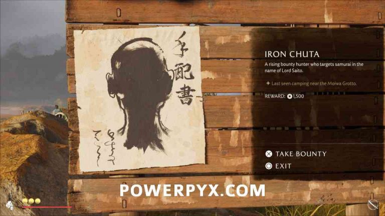 Во -первых, вы должны закончить побочную историю: отчаянное средство. Только после этого плакат награждения для Железного Чута появится на доске щедрости в Huranui's Rest Inn. Идите туда, чтобы взять плакат (если другие плакаты все еще находятся на доске, возьмите их первое и быстрое путешествие взад и вперед, пока он не появится).