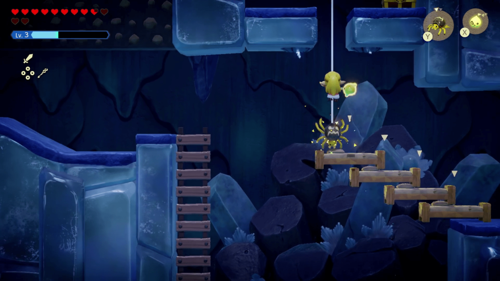 小心地攀爬墙壁,避开冰块。你也可以杀死他们,但你会注意到,他们的回声会落入虚空。不要担心快速尝试抓住它们——它们会在稍后的区域再次出现。
