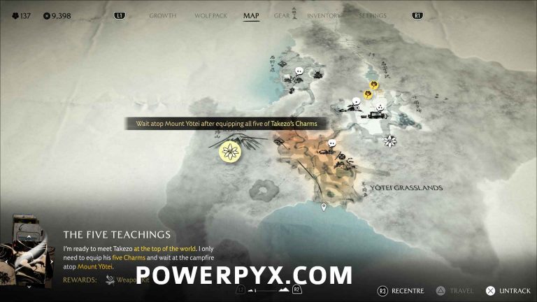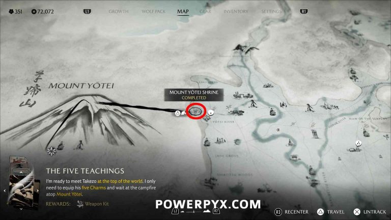 此任务发生在Yotei山的山顶上。要达到这一点,您必须从Yotei Grasslands西部的Yotei山神社沿着神社路径走:
